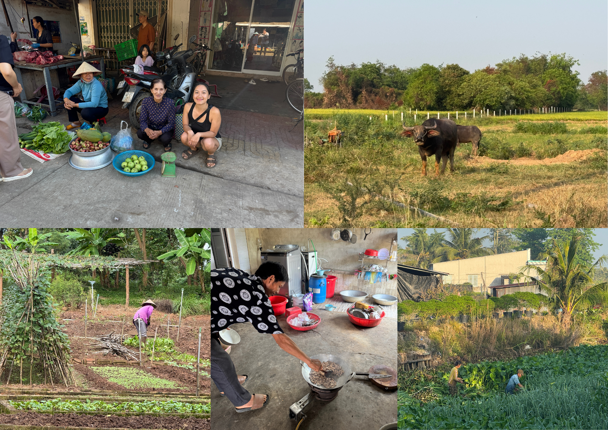 En visitant mes parents vietnamiens, fermiers à la campagne, j'imaginais les scènes de la Bretagne où j'ai grandi, dans l'ancien temps. J'avais l'impression d'être dans la ferme de mes grands-parents adoptifs telle qu'elle devait être il y a soixante-dix ans, avec ma grand-mère bretonne et ses sabots chassant les oies dans le poulailler. Vous pouvez voir une scène de la vie quotidienne ici avec ma belle-soeur, mon père et mes neveux vietnamiens à la ferme.
